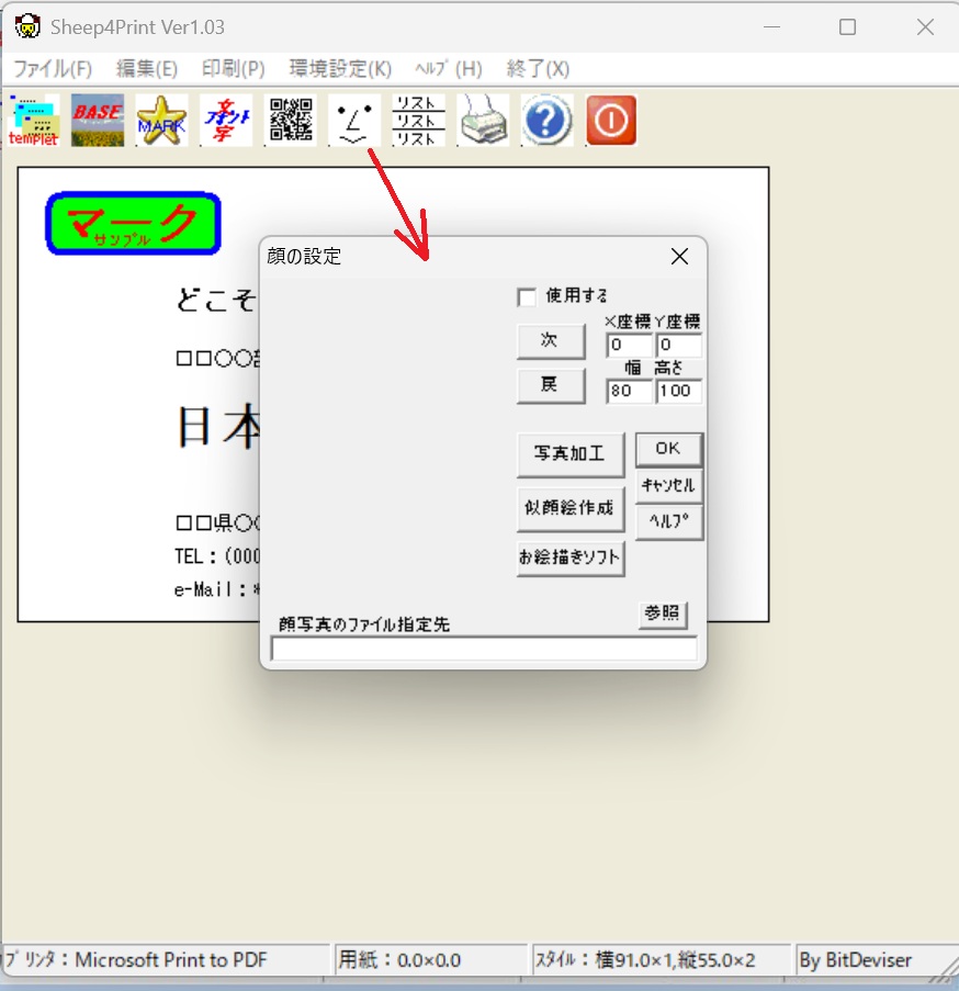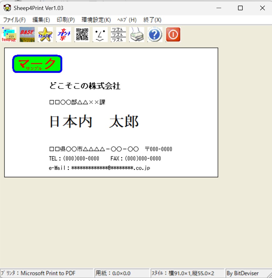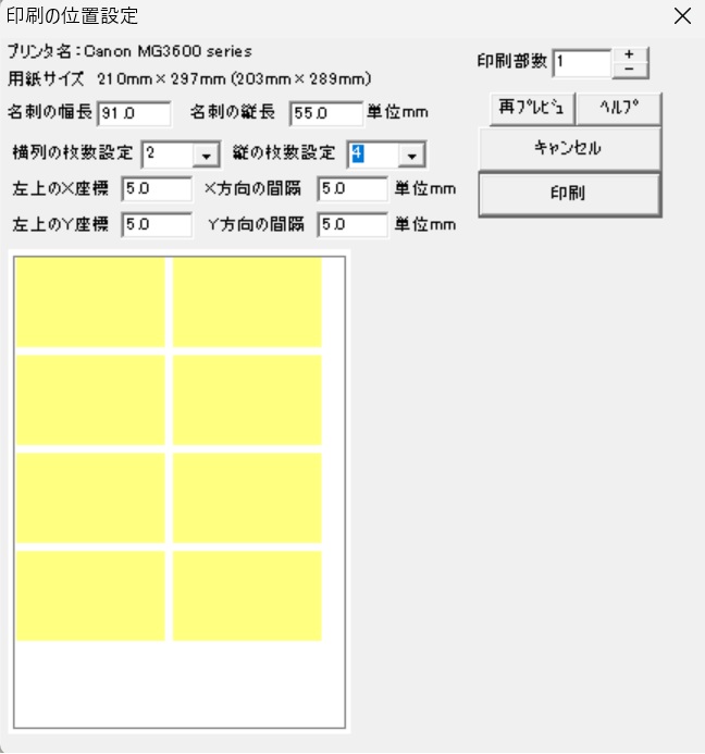 このソフトは名刺をプリンタで作成するソフトです