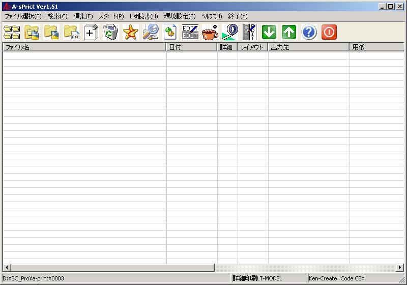 | 3 | プリンタと用紙の列挙 | メニューの 「環境設定」「プリンタと用紙の列挙」 をクリックしプリンタの列挙のボタンで押す |