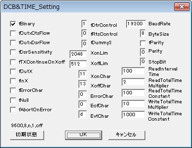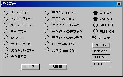 | MACRO文について MACROは4文字のコマンド文字とパラメーター文字により送信・受信などの シリアル操作を自動でできるものです。 又、記憶できる文字列のメモリがあります。 文字列メモリはMDATAと呼び、00〜99番地まであり、一つの番地で256文字記憶できます。 MACRO文はCR(改行)でひとつのコマンドになっています。 コマンド文字とパラメーター文字間にはスペースを入れて下さい。 パラメーター間もスペースを入れて下さい。 【コマント一覧表】 <送信コマンド> SEND 文字を指定してCH1で送信す 概要:パラメーターに設定された文字を送信します。 コマンド:SNED パラメーター:送信文字(先頭から6番めに記入) 送信文字は0〜FのHEX数値2文字で一組のASCに変換して送信します。 文字をそのまま送るときは“ ”又は‘ ’を前後に付ければHEXでなく ASCそのままで送信します。 例 SEND 02"123455667"030D パラメーター2に設定された文字「SX “123455667”EX CR」を送信します。 MSED M_DATAの内容をCH1で送信する 概要:パラメーターに設定されたMDATAの番号の文字を送信します。 コマンド:MSED パラメーター1: MDATAの番号(先頭から6番めに2文字記入 例 MOVE 00 02"ABC"030D MSED 00 MDATAの番地00にパラメーター文字「SX”ABC”EX CR」をセットし, MDATAの00番地の文字列を送信します。 SED2 文字を指定してCH2で送信す 概要:パラメーターに設定された文字を送信します。 コマンド:SND2 パラメーター:送信文字(先頭から6番めに記入) 送信文字は0〜FのHEX数値2文字で一組のASCに変換して送信します。 文字をそのまま送るときは“ ”又は‘ ’を前後に付ければHEXでなく ASCそのままで送信します。 例 SED2 02"123455667"030D パラメーター2に設定された文字「SX “123455667”EX CR」を送信します。 MSD2 M_DATAの内容をCH2で送信する 概要:パラメーターに設定されたMDATAの番号の文字を送信します。 コマンド:MSED パラメーター1: MDATAの番号(先頭から6番めに2文字記入 例 MOVE 00 02"ABC"030D MSD2 00 MDATAの番地00にパラメーター文字「SX”ABC”EX CR」をセットし, MDATAの00番地の文字列を送信します。 <受信コマンド> READ 文字をCH1で受信してM_DATAへ格納する 概要:このコマンドが実行されたから、受信するまで待ちつづけ、 受信された文字は、パラメーターに設定されたMDATAの番号に格納されます。 (このコマンドを実行された後の文字を受信します) コマンド:READ パラメーター1: MDATAの番号(先頭から6番めに2文字記入) パラメーター2: 受信数(先頭から9番めに3文字記入) 受信数が設定されている数までこのコマンドは実行します。 受信文字を000にすると受信時間が優先になり受信時間まで の文字を受信します。 パラメーター3: 受信時間(先頭から13番めに3文字記入) 受信時間が設定されている時間までこのコマンドは実行します。 受信文字を000にすると受信時間が無効になり受信時間まで の文字を受信します。 単位は0.1Sです。 *パラメーター2とパラメーター3両方0のときは一回受信するまで実行します。 例 READ 00 010 100 MSED 00 受信数10文字又は、10.0秒まで受信待ちし、その文字列は、 MADATAの00番地に記憶され、その文字をそのまま送信します。 ZRED 文字をCH1で受信してM_DATAへ格納する(以前も取得) 概要:受信するまで待ちつづけ、受信された文字は、パラメーターに設定されたMDATAの番号に 格納されます。(但し受信文字は送信後から記憶された文字です。 タイミングによってはREADコマンドが読めない時使います。) コマンド:READ パラメーター1: MDATAの番号(先頭から6番めに2文字記入) パラメーター2: 受信数(先頭から9番めに3文字記入) 受信数が設定されている数までこのコマンドは実行します。 受信文字を000にすると受信時間が優先になり受信時間まで の文字を受信します。 パラメーター3: 受信時間(先頭から13番めに3文字記入) 受信時間が設定されている時間までこのコマンドは実行します。 受信文字を000にすると受信時間が無効になり受信時間まで の文字を受信します。 単位は0.1Sです。 *パラメーター2とパラメーター3両方0のときは一回受信するまで実行します。 例 ZEAD 00 010 100 MSED 00 受信数10文字又は、10.0秒まで受信待ちし、その文字列は、MADATAの00番地に 記憶され、その文字をそのまま送信します。 RED2 文字をCH2で受信してM_DATAへ格納する 概要:このコマンドが実行されたから、受信するまで待ちつづけ、 受信された文字は、パラメーターに設定されたMDATAの番号に格納されます。 (このコマンドを実行された後の文字を受信します) コマンド:RED2 パラメーター1: MDATAの番号(先頭から6番めに2文字記入) パラメーター2: 受信数(先頭から9番めに3文字記入) 受信数が設定されている数までこのコマンドは実行します。 受信文字を000にすると受信時間が優先になり受信時間まで の文字を受信します。 パラメーター3: 受信時間(先頭から13番めに3文字記入) 受信時間が設定されている時間までこのコマンドは実行します。 受信文字を000にすると受信時間が無効になり受信時間まで の文字を受信します。 単位は0.1Sです。 *パラメー