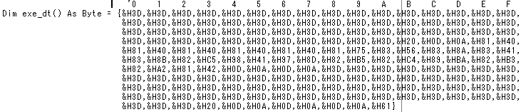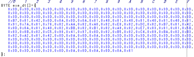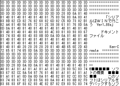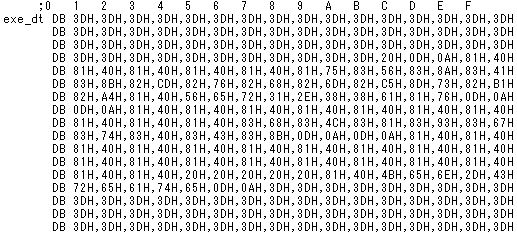 | ファイルをバイナリ形式で表示します。 又、C言語形式・アセンブラ形式・BASIC形式で表示します。 そして、それをC言語形式・アセンブラ形式・BASIC形式で保存します。 保存したファイルは、各言語のデーターとして活用出来ます。 |