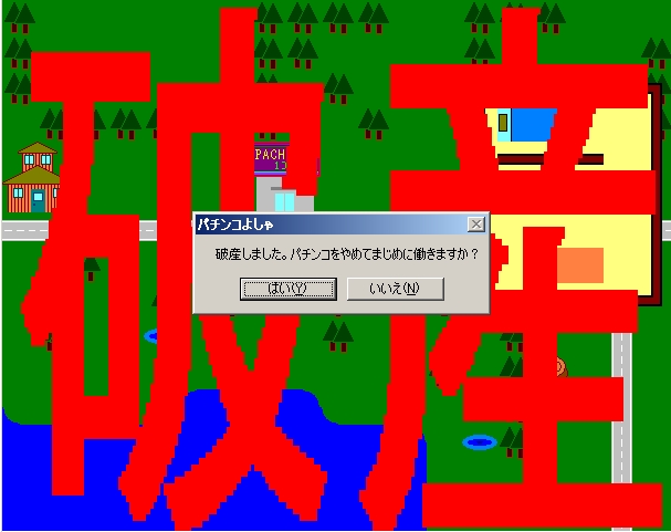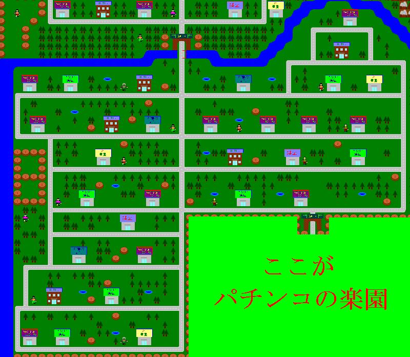| 1・パチンコ台で玉が入る秘密が何処かの民家で聞く。 2・民家でパチンコの玉の強さを固定するアイテムが売っている。 3・通行権は10万で民家で売っている。 4・ここのステージには、酒場は3軒、民家が5軒ある。 5・速く歩けるアイテムがある。 6・通行権2は民家で10万で売っている。 |