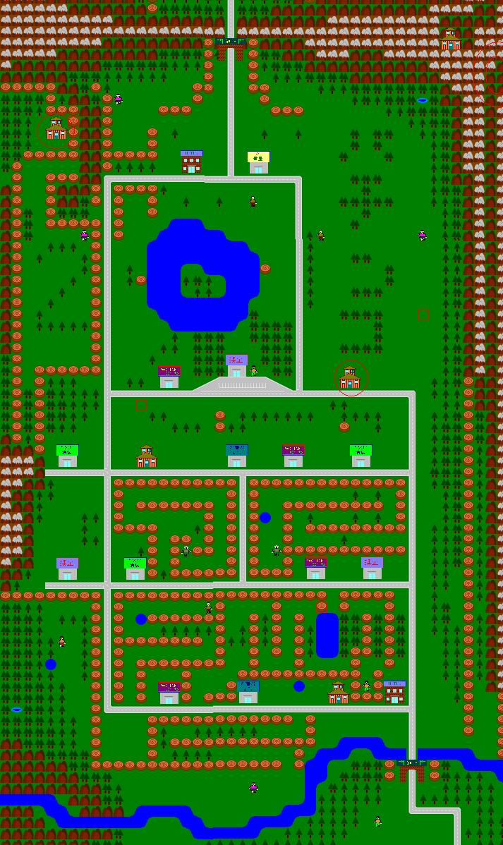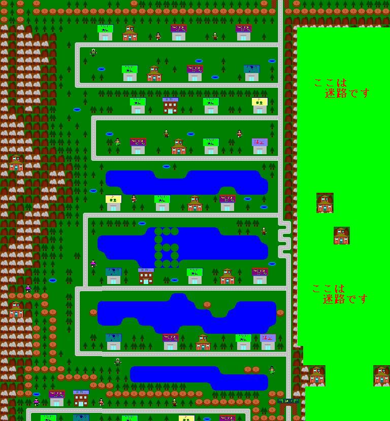 | 1・このステージには占い師がいている。この占いが攻略の重要ポイントだ。 2・通行権は、木の迷路の民家で売っている。 3・山の民家においしいキノコを売っている。 4・上の離れの家は、占い師の家だ。 5・キノコは1000円で売っている。 6・通行権3は15万で売っている。 7・占いは、おいしいキノコで占ってもらえる。 8・ここのステージは、酒場は9軒、民家が10軒ある。 9・ここのステージは、パチンコ店が11軒もある。 |