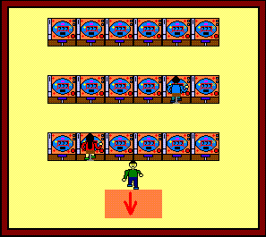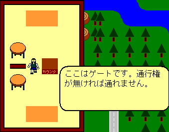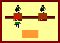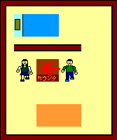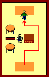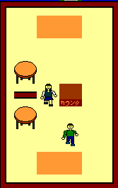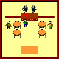 カウンタで矢印の方向から入ると店員と会話します。