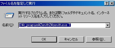 2・参照ボタンを押してZenith2.EXEを指定します。