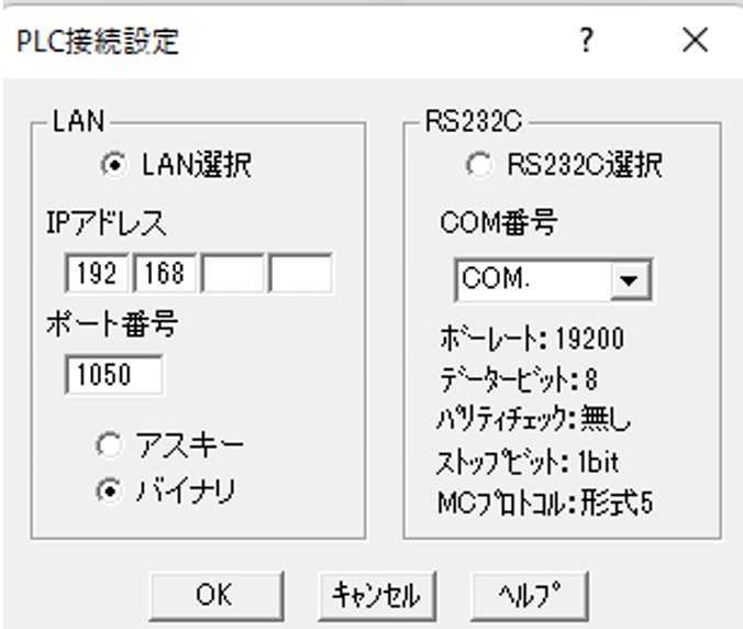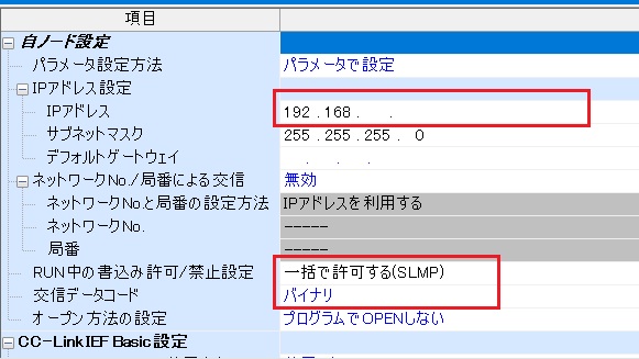 シーケンサIPアドレス 例192.168.〇〇〇. 〇〇〇